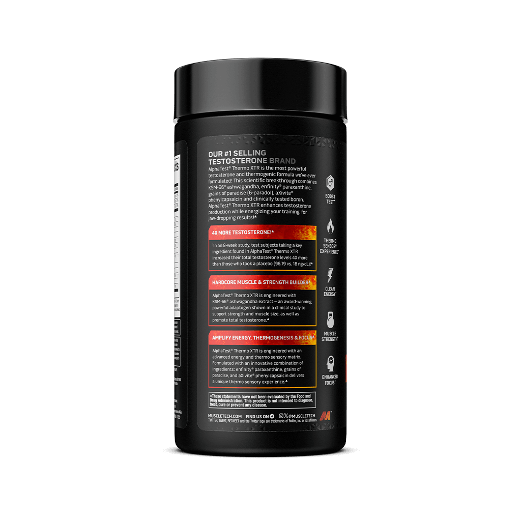With cutting-edge ingredients and research-backed dosages, AlphaTest® Thermo XTR offers a comprehensive formula designed to enhance testosterone levels (within the normal healthy range) and thermogenesis (heat production). Add AlphaTest® Thermo XTR to your supplement arsenal and feel confident you’re providing your body with a high-potency formula that helps you get the results you’re looking for!