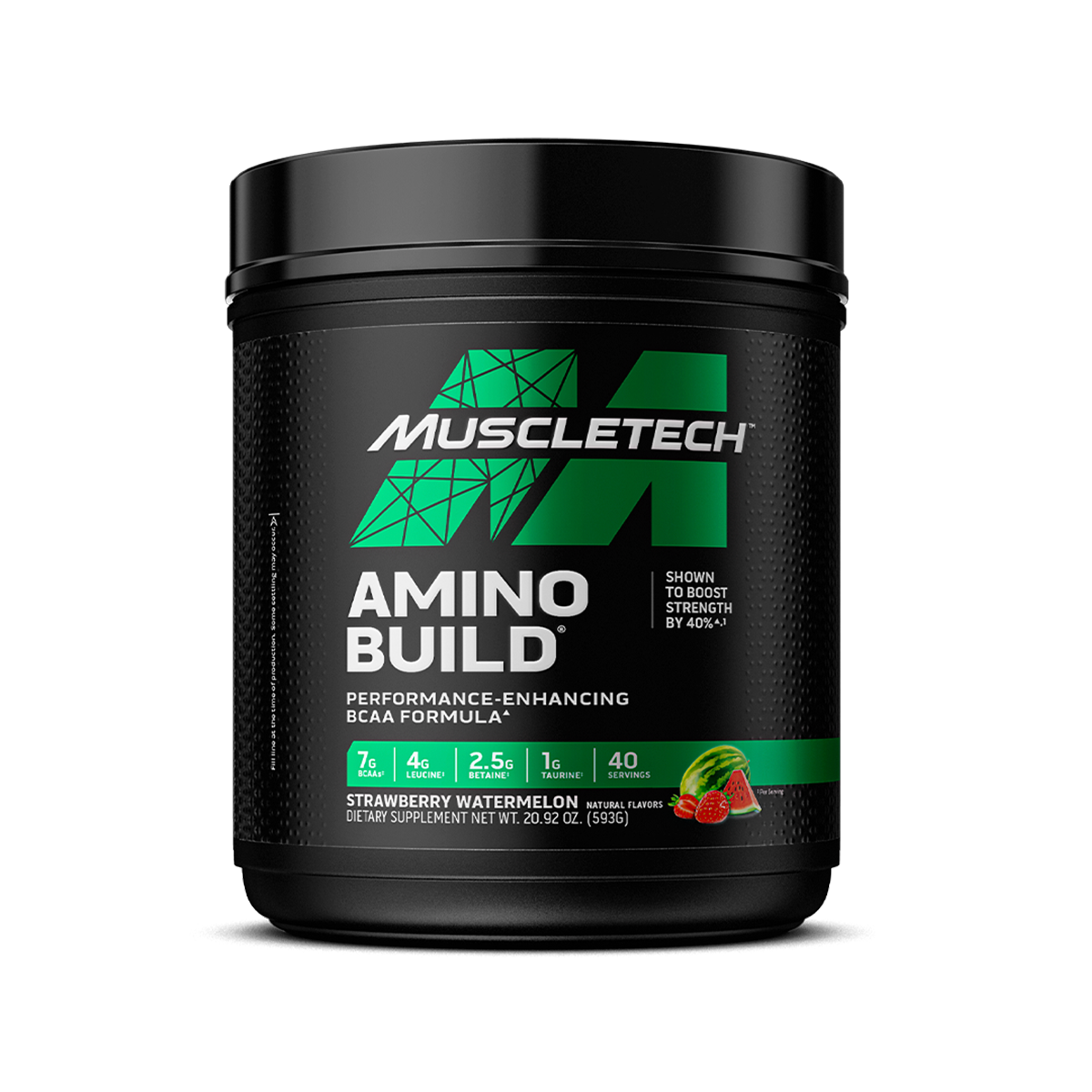 Amino Build is a scientifically dosed muscle and performance-enhancing formula that supplies your body with critical BCAAs to boost strength and support recovery.