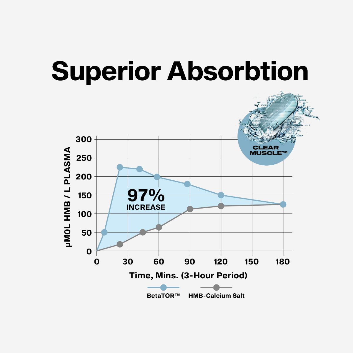 Clear Muscle® Liquid HMB is the most advanced HMB supplement available, designed for athletes, powerlifters, bodybuilders, and anyone striving for serious muscle gains. Powered by BetaTOR®, a next-gen liquid HMB (beta-hydroxy-beta-methylbutyrate) formula, it accelerates muscle growth, boosts strength, and speeds up recovery with superior efficiency. Compared to traditional HMB dietary supplements and HMB calcium-salt, Clear Muscle® Liquid HMB provides 97% superior absorption, delivering faster, more effective results. For next-level gains, combine Clear Muscle® Liquid HMB with 100% Creatine from MuscleTech®—the ultimate creatine and HMB stack for unmatched performance, recovery, and muscle development.