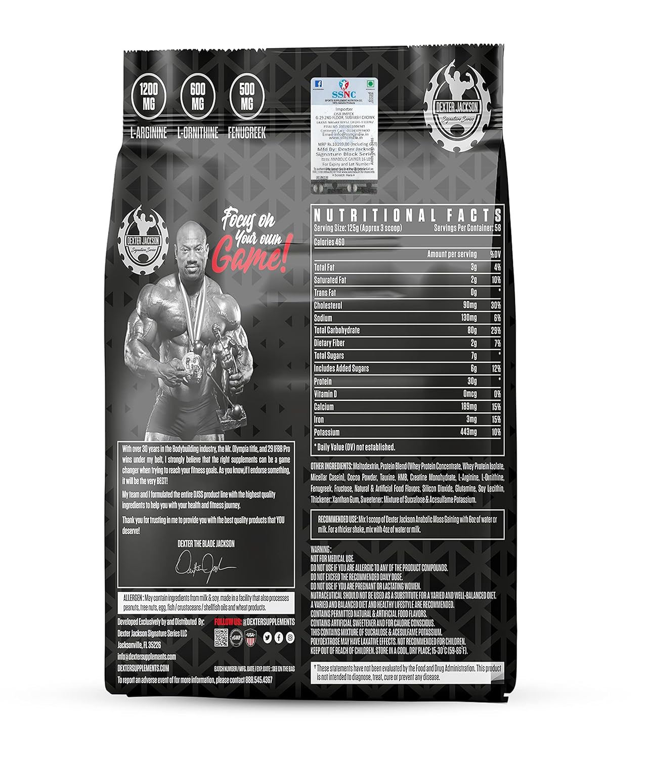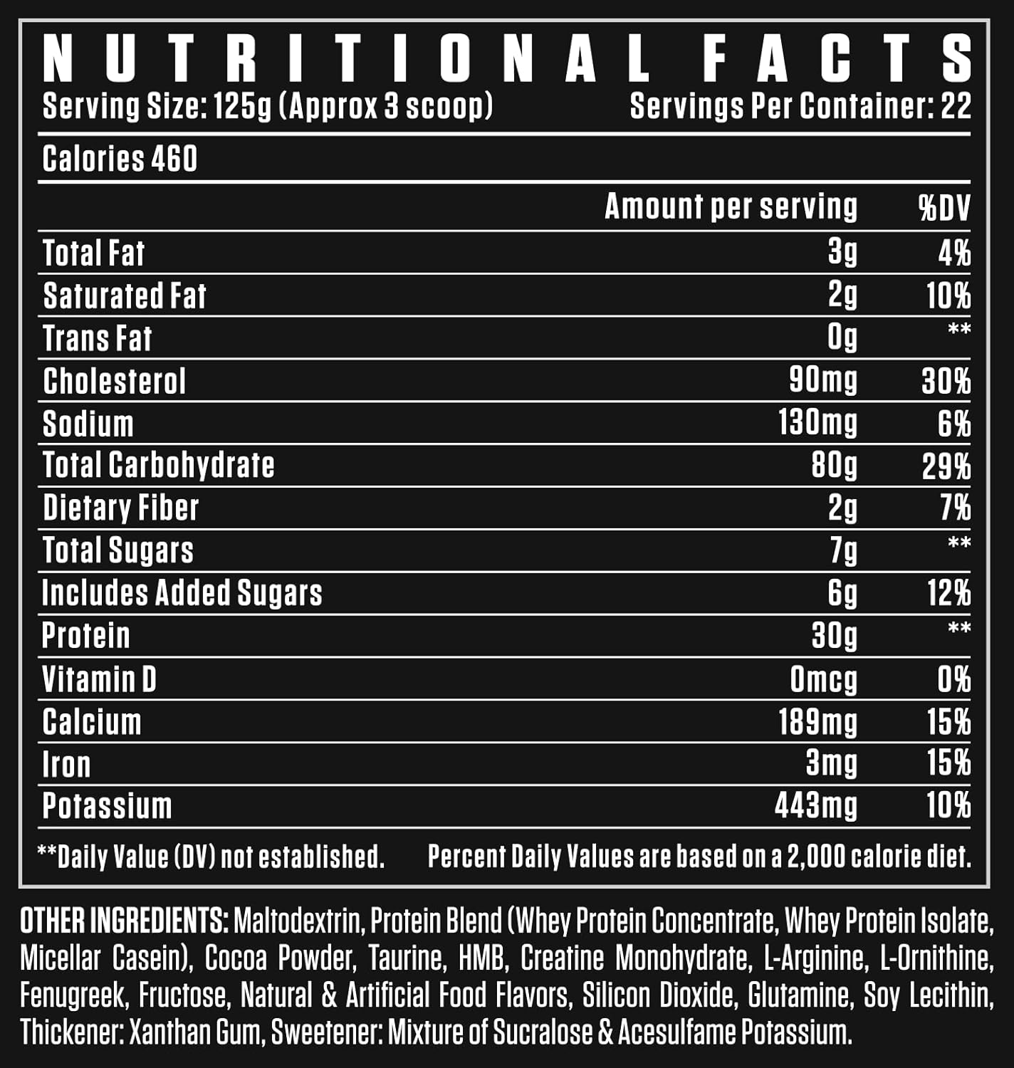 Each serving of Anabolic Mass Gainer provides 60g of protein, 8g of fat, and 115g of carbohydrates, making it a high-calorie option for those looking to support their weight gain goals.